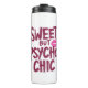 Embrace your complex personality with this fun and sassy graphic. Featuring the bold, edgy quote "Sweet but Psycho Chic" in a vibrant pink brush font, this design is all about attitude. A playful pink kiss mark adds the perfect touch of girly flair. It's the ideal statement for anyone who is a little bit sweet, a little bit sassy, and 100% chic.