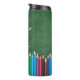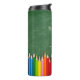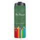Un agitateur moderne et personnalisé pour les enseignants avec un arrière - plan en damier vert avec des crayons colorés. Nom de l'enseignant en script. Texte personnalisé en bas dans une police serif.