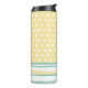 Jolie tasse thermique réalisée en turquoise, jaune et blanc, avec des points fantaisistes et des rayures horizontales. Personnalisez la tasse avec une initiale monogramme sur le devant. Idée cadeau géniale pour elle.