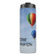 Keeps your beverage hot or cold (depending on the beverage) whether you are ballooning or just vegging. A quality thermal tumbler featuring a design with three colorful and humorous (one has a clown face) hot air balloons floating across a cloudy sky. Personalize with a name. The text is easily changed by using the template. However, for other changes (different type font, color, size or placement) select "Personalize this template" then select "Edit using Design Tool." Makes a great gift.