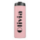 Un simple tondeuse thermique rose et noir avec votre nom dans un texte amusant rétro. Entièrement modifiable, y compris la couleur de base du tumeur, le libellé du texte, la couleur, la taille et le style. Sélectionnez "Personnalisez ce modèle", et effectuez les modifications souhaitées, ou vous pouvez commander ce tumbler tel quel. Montré est le nom, Olivia, en texte rétro noir sur un tumeur rose avec couvercle noir. Un tumbler personnalisé fait un merveilleux cadeau pour vos demoiselles d'honneur, votre servante d'honneur, les invités du week-end, la réunion de famille ou pour une sortie pour filles ! De 369MyName.