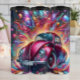Cette illustration fascinante et fantastique présente une voiture rose classique qui semble être dans une explosion de liquides, de formes et d'éléments colorés et abstraits, comme des graffitis. L'arrière - plan est une scène de rue, mais elle est submergée par l'explosion de roses, de bleus et d'oranges lumineux qui entourent la voiture, donnant à toute la scène une sensation dynamique, énergique et surréaliste.