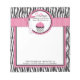 Sweet polka dot cupcake 3D look tag and trims with black and white zebra print and hot pink accents business notepad design.