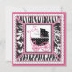 Boutique style zebra, damask, and dot print with hot pink accents and a baby carriage.