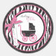 Boutique style zebra, damask, and dot print with hot pink accents and a baby carriage.