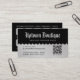 Custom business card featuring black and silver design with Old English and sans-serif typography, and classic reward system on the back for customers to receive something, i.e. discount, free item, etc. Click 'Personalize' to add your company details, including name, type of service, phone number, website, address, qr code with text, store hours, additional info, and reward system on the back.
