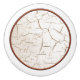 Bouton d'aspect vintage avec peinture fissurée à l'intérieur d'un anneau de tonnelier ancien.