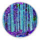 Un abstrait vibrant d'arbres bleus, de feuilles violets et de sous-bois.