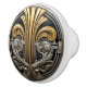 Bonnet en céramique Art Nouveau avec un design Grecian or et argent. Ce beau bouton en céramique a un look métallique et grec sur arrière - plan noir. Mettez à jour votre buffet, votre cuisine et vos armoires de bain, IMPRIMER IMAGE AUCUNE MÈRE RÉELLE DE PEARL, VERRE STAINÉ, GEMS OU MÉTAL D'OR