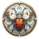 Magnifique image Art Déco d'une coccinelle aux accents de losange sur ses ailes et le haut du corps. Arrière - plan est un carrelage vintage bleu clair.