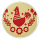 Ce bouton de poulet rouge scandinave peut correspondre à cottagecore, ferme ou de nombreux thèmes de cuisine. L'arrière - plan tonique neutre rend le design rouge pop et aura l'air vintage, amusant et précis sur tout.