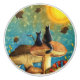 Image mignonne de deux chats assis au-dessus d'un champignon géant dans une forêt remplie de champignons qui observent les feuilles d'automne tomber contre le soleil et le ciel bleu pour créer un merveilleux panorama de l'histoire. .