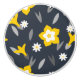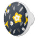 Fleurs et feuilles rétro en blanc, gris & ocre jaune sur un arrière - plan bleu minuit. La couleur Arrière - plan peut être modifiée.