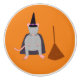 Ce superbe bouton en céramique présente l'image art numérique d'une mignonne sorcière de rat gris avec oreilles roses, nez, pieds et queue. Le rat porte un casquette pointu noir avec une boucle d'or et des étoiles violettes tout autour. Les rats portent aussi un manteau noir couvert d'étoiles violettes. A côté du rat, un balai brun fait de brindilles. Ce rat est habillé prêt pour une fête d'Halloween.