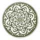 Ce mandala blanc est posé sur une mousse sombre ou un arrière - plan vert olive. Les couleurs sont harmonieuses et équilibrées. Partie de la collection Kylgh Mandala.