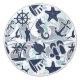 Ce bouton en céramique présente un motif d'été amusant d'éléments nautiques, dont l'ancre, la mouette, l'étoile de mer et bien d'autres, le tout en bleu marine avec des tourbillons et des accents bleu aqua ondulé. Recherchez ID839 et ID840 pour voir d'autres produits avec cette conception et des options de couleur supplémentaires.
