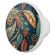 Ce bouton de coffret ethnique motif abstrait présente des tourbillons de plumes, de fleurs et de cachemire comme des formes turquoises poussiéreuses, de terre cuite, de rouille, de bleu profond vert et de crème. Cette impression de style vintage s'adapterait à une variété de couleurs et de styles de décoration, avec un motif avec des tourbillons audacieux dans les tons muets.