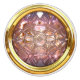 Un cru, bouton en verre avec un rose, texturisé, le centre de regard de bijou et bordé avec de l'or. Pour les collecteurs et les personnes de bouton comme qui à coudre.