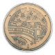 Cette couverture de trou d'homme dépeint une scène orientale avec un arbre de fleurs de cerisier, un pont incurvé et des lampes de style de pagoda. Fait dans le laiton. Très fleuri.