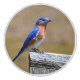 Ce bouton en céramique comporte un oiseau bleu se reposant sur sa maison dans le Connecticut. Grand pour toute pièce dans la maison ! Copyright : Marjorie Tietjen