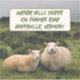 Autocollant sur mesure avec mouton dans un design de terrain. Le modèle texte vert foncé imprimé peut être utilisé pour un nom et une adresse de magasin, de la publicité d'affaires ou pour un plaisir personnel. Choisissez une taille.