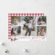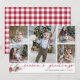 Partagez vos salutations de vacances avec ces cartes photo rustiques chic de Noël avec cinq photos préférées dans une mise en page collage (4 carré et un portrait/vertical). "Bonnes Fêtes" apparaît le long du fond en typographie manuscrite, accentuée de cônes de pin, de baies et de fleurs de vacances rouges sur une touffe peinte. Personnalisez avec votre ou vos nom(s) et l'année le long du bas. Les cartes retournent à un buffle rustique chèque plaid motif en rouge et blanc de vacances assortis.
