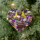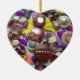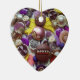 Un joli ornement en forme de coeur avec un collage de boutons violets et des arcs jaunes.