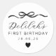 Celebrate your little girl's first Birthday with this design, featuring elegant black bow, a playful wavy border, and a little heart.