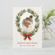 Bow and Greenery Oval Frame Holiday Photo Card