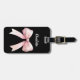 A black background, decorated with a large pink bow on the front. Personalize and add your name on the front. Your contact information on the back.