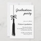 Celebrate your graduate’s big achievement with this timeless black-and-white graduation party invitation. Featuring a personalized photo displayed in an elegant wavy frame, this design is enhanced with a hand-drawn tassel and a stylish coquette-style bow. The handwritten calligraphy-style font adds a sophisticated and personal touch, perfect for honouring the Class of 2025.