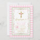 Bow Coquette Baptism Gold Cross Grandmillenial Pink Floral Gingham Invitation