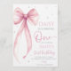 Bow Coquette Pink 1st Birthday Invitation