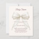 Host a sophisticated celebration with this elegant gender-neutral baby shower invitation. The design features a large, detailed ivory bow draped with delicate pearl strands against a soft cream background. It is the perfect choice for parents-to-be who prefer a timeless and classy aesthetic for their upcoming arrival.