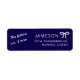 Add a playful, modern touch to your mail with this return address label. The design pairs a handwritten-style script font with a clean, easy-to-read sans serif font, accented with a charming hand-drawn bow for a lighthearted, whimsical look that still feels polished and versatile. To change the colors to match your invitation or card, click 'Edit using Design Tool' in the 'Personalize this Template' section.