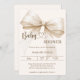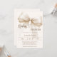 A soft ivory background, decorated with a large beige bow. Gender neutral. Personalize and add a name and party details.