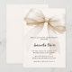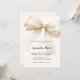 A soft ivory, cream background, decorated with a large bow. Gender neutral. Personalize and add a name and party details.