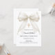 Celebrate your daughter's milestone with this elegant First Holy Communion invitation. This design features a stunning, oversized ivory silk bow adorned with delicate pearl strands and a central ornate gold cross. It is the perfect choice for a traditional Catholic ceremony or a sophisticated religious celebration for a young girl.
