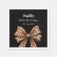 A black background. Decorated with a large bow with leopard print. Personalize and add a name, age, and a date. White handwritten style script.