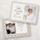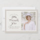 This double-sided graduation thank you card features a photo template on the front, accented by a simple coquette bow illustration and trendy handwritten text. Personalize the class year, graduate name, and school. The reverse side displays a 2nd photo, along with space for a custom note and signature. Matching bow pattern background. All background and border colors are fully editable, allowing you to easily match school colors or personal preferences. © Kimbellished, LLC