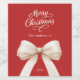 A red background and cream, beige coloured text and bow. Merry Christmas is written with an elegant hand-lettered style script. Personalize and add your family name and year.