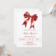 A white background, decorated with a large red bow. Personalize and add a name and party details.
