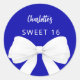 Bow royal blue white Sweet 16 Classic Round Sticker