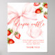 Celebrate your little one's arrival with this charming coquette bow theme diaper raffle table sign. Featuring a delightful strawberry theme with pink bows, elegant red script, and soft watercolor accents, this invite is perfect for a spring or summer celebration.