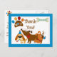 Bow Wow Dog thank you postcard, easy to customize on the back or leave blank and hand write a message. Features cute dogs and paw prints design. We have the matching kids Bow Wow Dog birthday invitation!