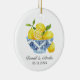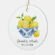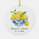 Celebrate your first holiday season as newlyweds with this elegant Christmas ornament featuring a bowl of lemons with blue chinoiserie. A timeless keepsake to personalize with your names and wedding date, perfect for hanging on your tree or gifting to another newly married couple.