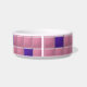 Three dimensional square tiles, that look like glass or ceramic, are replicated across the background in a pink. Seven purple squares are randomly scattered over the area.