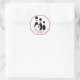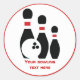 Bowling ball and pins sticker featuring a minimalist icon of three black bowling pins with red stripes, a ball and your text on white background with red border. This cool design is a template and it is completely customizable.