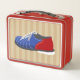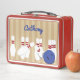 Create a personalized accessory that's perfect for your favourite bowler. This lunchbox is ready to be personalized with a name in blue script lettering and features illustrations of a bowling ball and bowling pins. The reverse side has a coordinating illustration a bowling shoe.