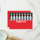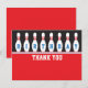 Bowling party flat thank you card (4.5 x 6.25") with a row of bowling pins and and the word "Birthday" spelled on the pins. Matches the same style birthday party invitation. For custom requests or help with customizing please use the store contact link.